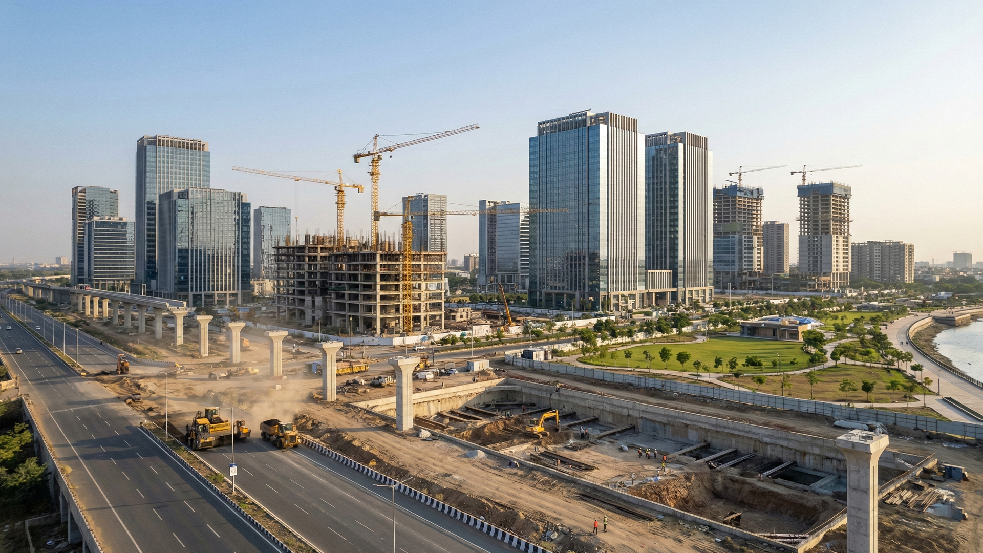 The city is designed with modern living in mind. Underground tunnels carry utilities like water, power, and telecom, keeping the surface “dig-free.” Residents can look forward to a 27-acre central park, riverfront spaces, jogging and cycling tracks, sports courts, plazas, and shopping and dining zones, turning GIFT City into more than just a place to work.