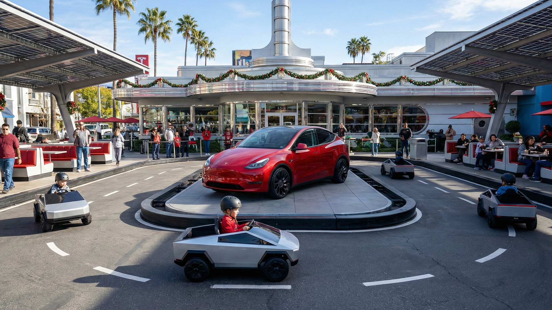 Tesla is spreading holiday cheer in a creative way. At its flagship diner in West Hollywood, children got the chance to race…