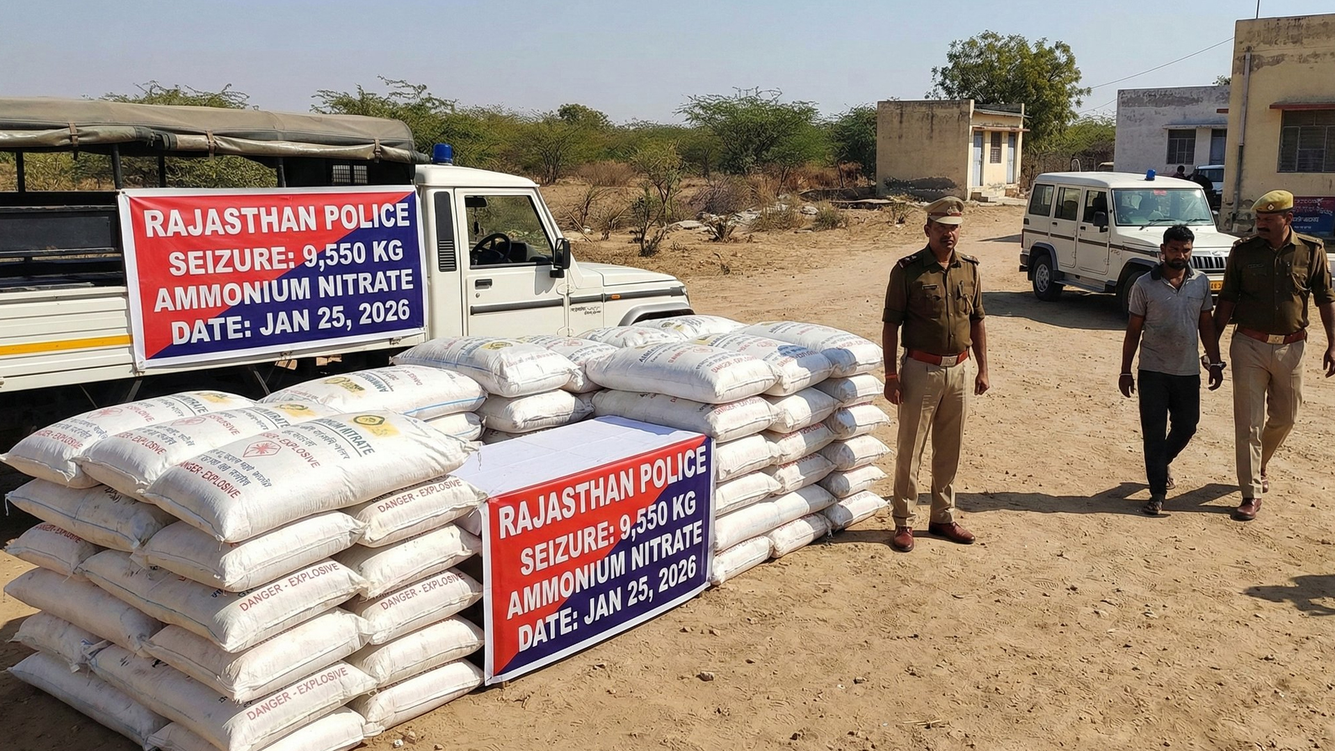 Ahead of Republic Day, Rajasthan Police seized around 10,000 kg of explosives, detonators, and fuse wires from a farmhouse in Nagaur district. One person was arrested, while security agencies launched a wider probe into the source and intended use.
