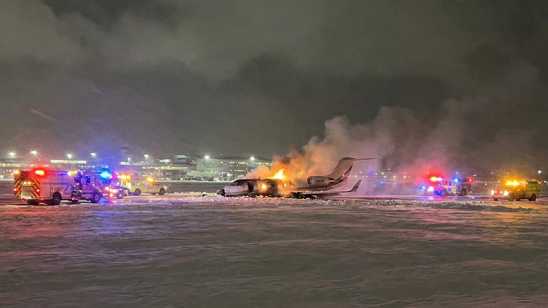 A private Bombardier jet carrying eight people crashed during takeoff at Bangor International Airport, Maine, amid a severe winter storm. Emergency crews responded immediately. The FAA and NTSB have launched investigations, while the airport remains closed.