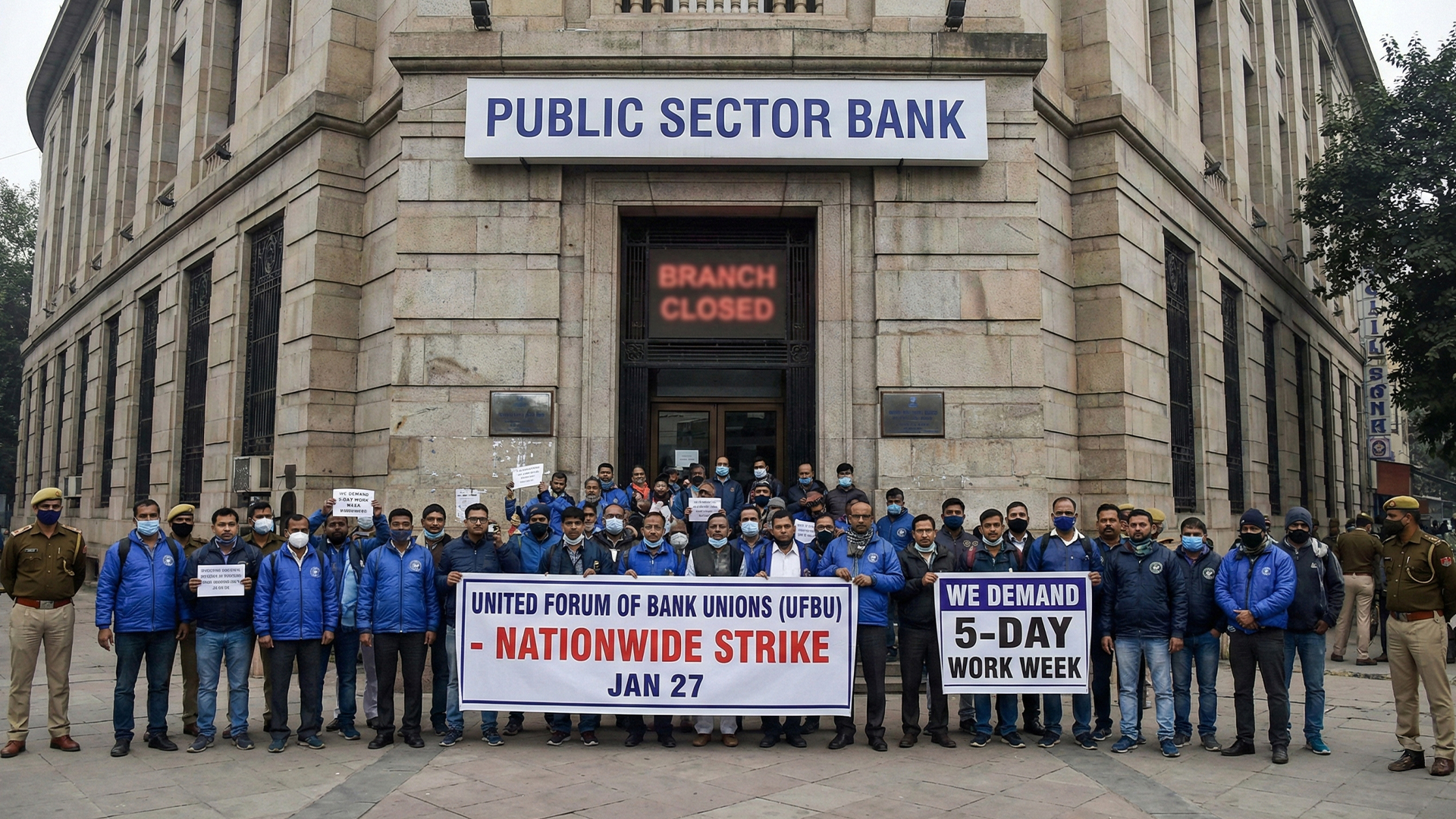 Bank unions under UFBU have threat-ened a nationwide strike on January 27 to demand a five-day work week. Public sector bank branches may face disruptions, while ATMs and digital services are expected to operate with minimal impact.