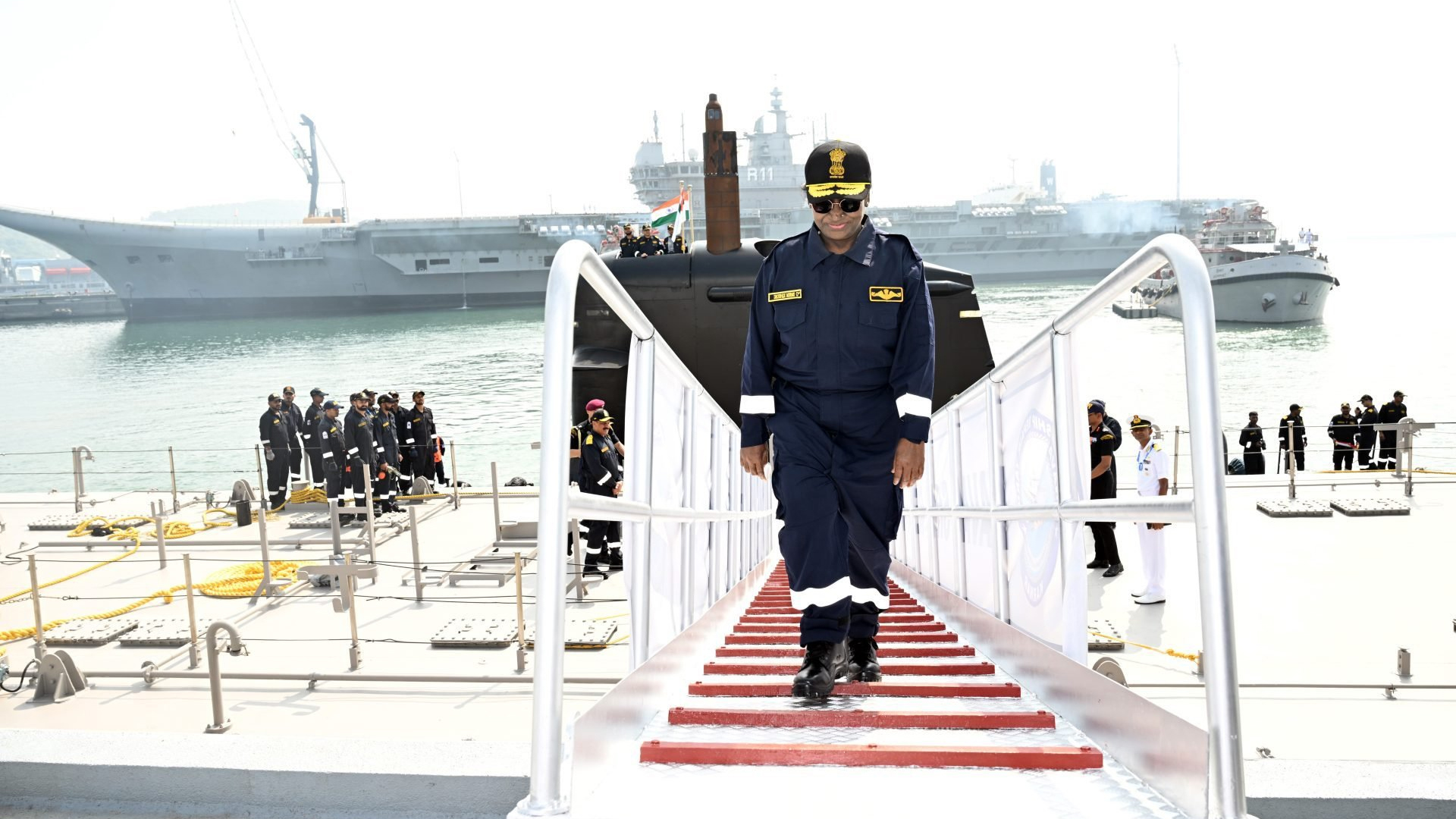 President Droupadi Murmu embarked on a submarine sortie aboard the indigenous INS Vaghsheer at Karwar Naval Base, becoming the second Indian President to do so. She commended the Navy’s preparedness and the crew’s professionalism during the exercise.