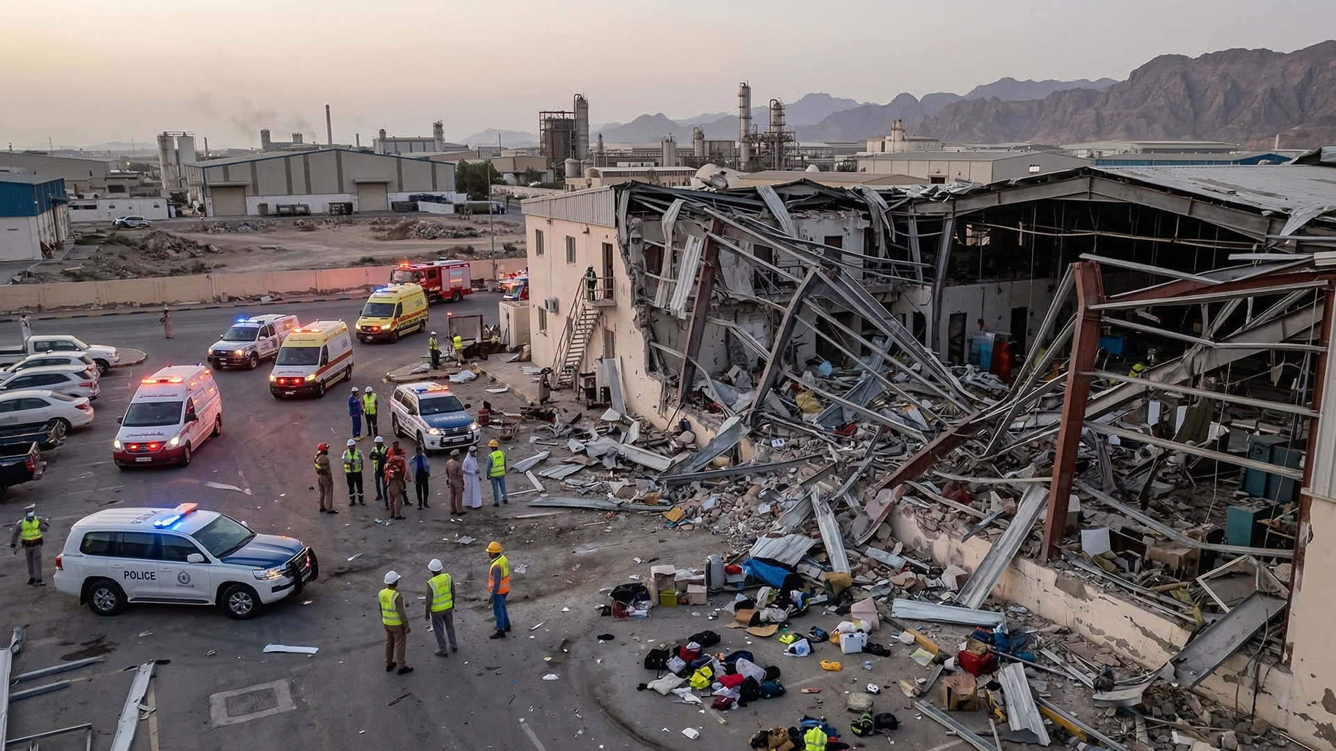 Two Indian workers were killed and ten others injured after a drone attack hit an industrial facility in Sohar, Oman. Authorities said the injured are receiving treatment. Indian officials are in touch with Omani authorities following the incident.