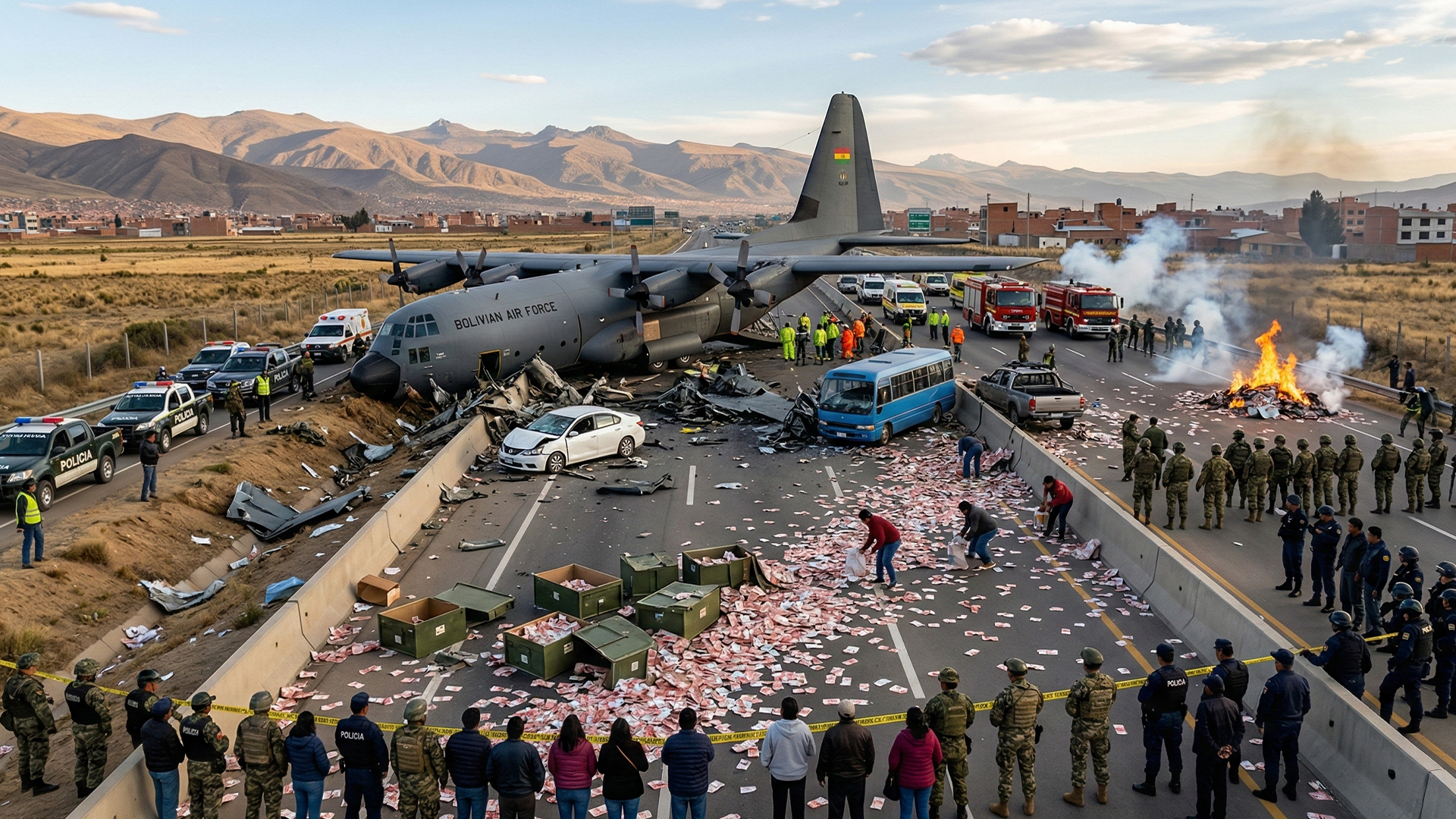 A military cargo aircraft transporting banknotes crashed near La Paz, Bolivia killing at least 15 people. Emergency teams reached the scene as officials began investigating what caused the deadly incident.