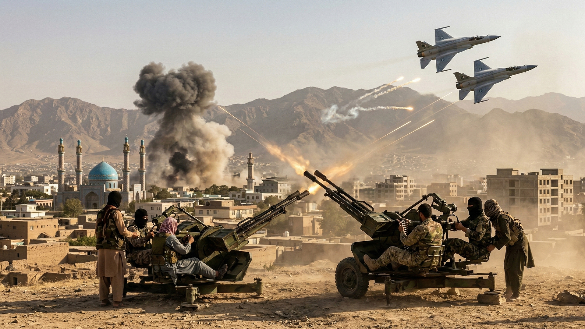 Explosions and gunfire shook Kabul as Afghan forces fired at Pakistani aircraft entering Afghan airspace. Casualties and damage are unclear. The incident marks a sharp escalation in ongoing tensions and cross-border clashes between the two neighbors.