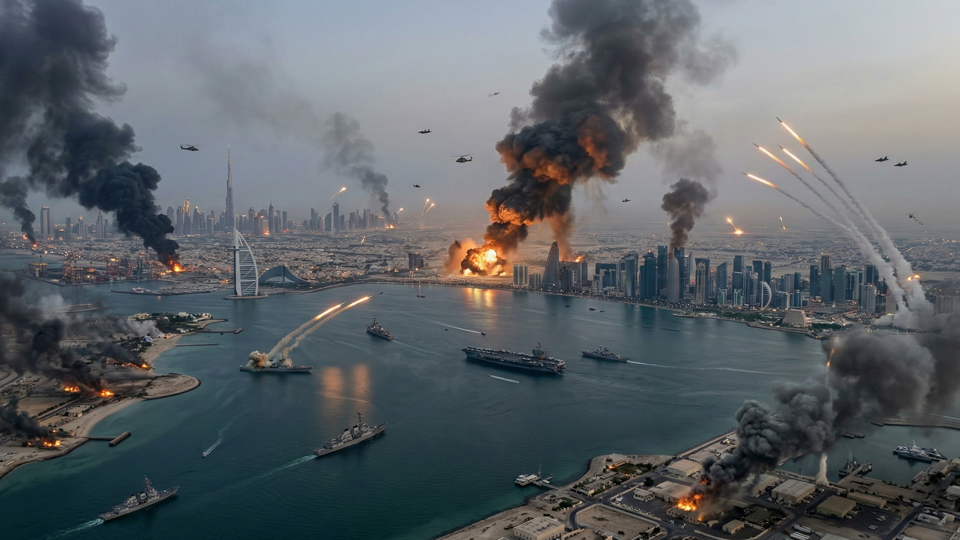 Multiple explosions hit Dubai, Doha and Manama as Iran launched missile and drone strikes on US and allied assets. Air defences intercepted many attacks, but debris and fires caused panic, disrupting travel and raising safety concerns across the Gulf.