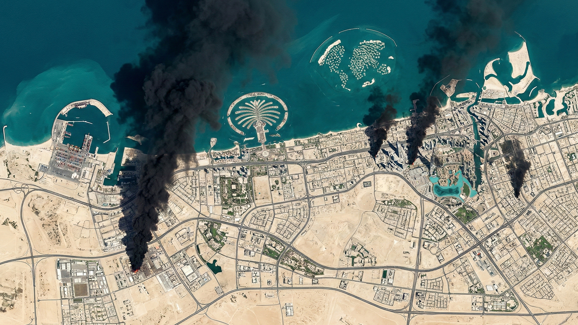 Satellite images show thick black smoke over Dubai after Iran launched missiles and drones targeting Gulf states. Air defences intercepted most threats, but debris caused fires, alarming residents and disrupting normal life across the region.
