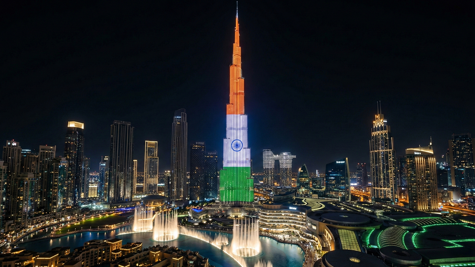 The Burj Khalifa in Dubai illuminated in India’s tricolour to celebrate the India AI Impact Summit, showcasing messages on artificial intelligence and innovation. The tribute reflected strengthening India-United Arab Emirates ties and the country’s growing leadership in emerging technologies.