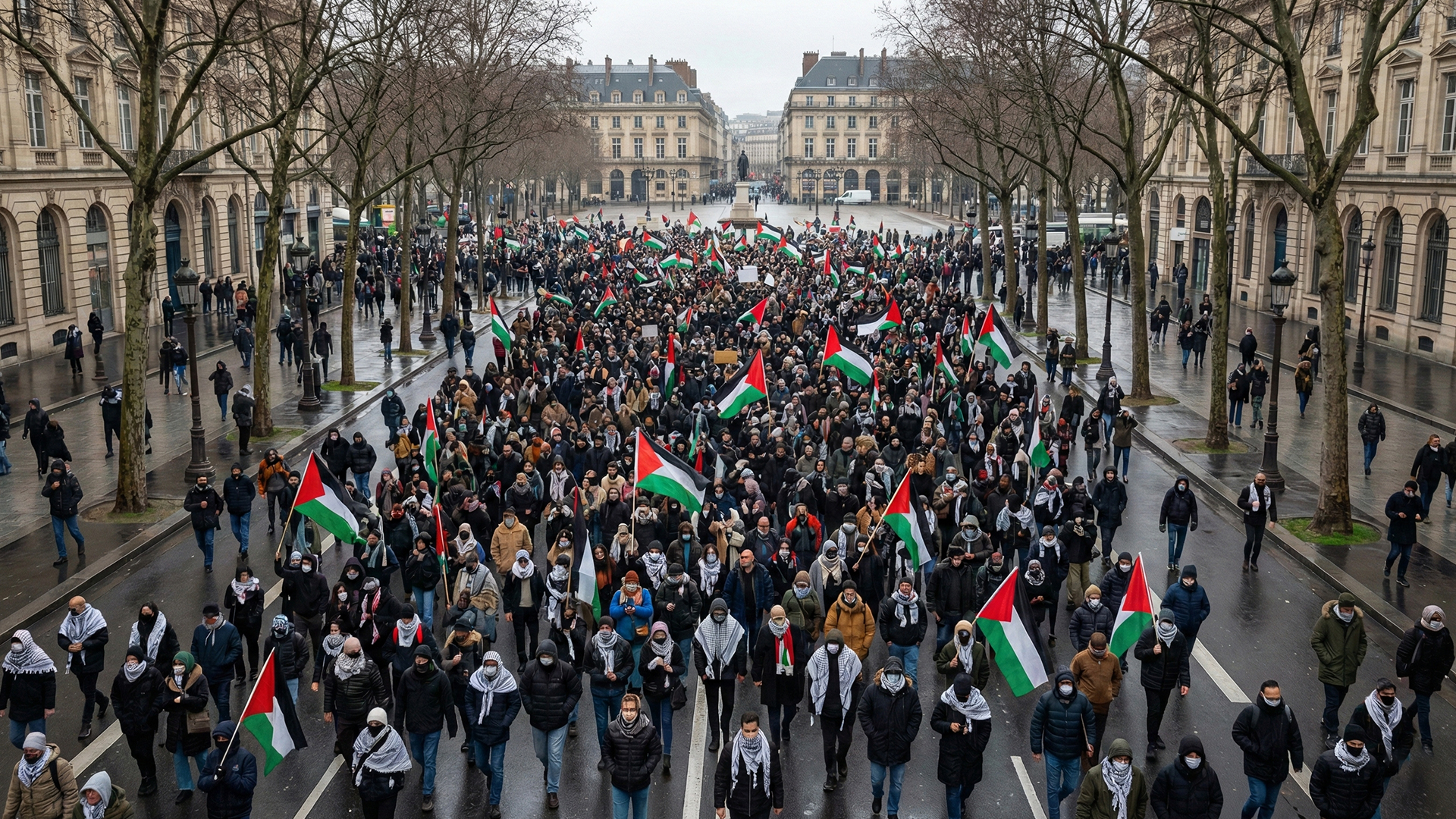 Massive demonstrations in cities from Paris to London, demanding peace and humanitarian aid