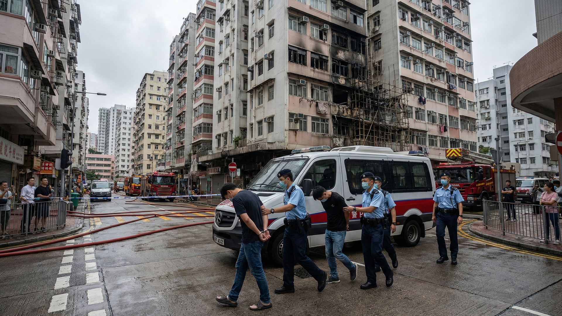 The blaze broke out around 2:50 p.m. on scaffolding outside a building undergoing renovations. Strong winds and highly flammable construction materials, including plastic sheets, foam-filled windows, and bamboo scaffolding, allowed the fire to spread rapidly, consuming several towers within hours. Videos from the scene showed flames leaping from upper floors while residents screamed for help.