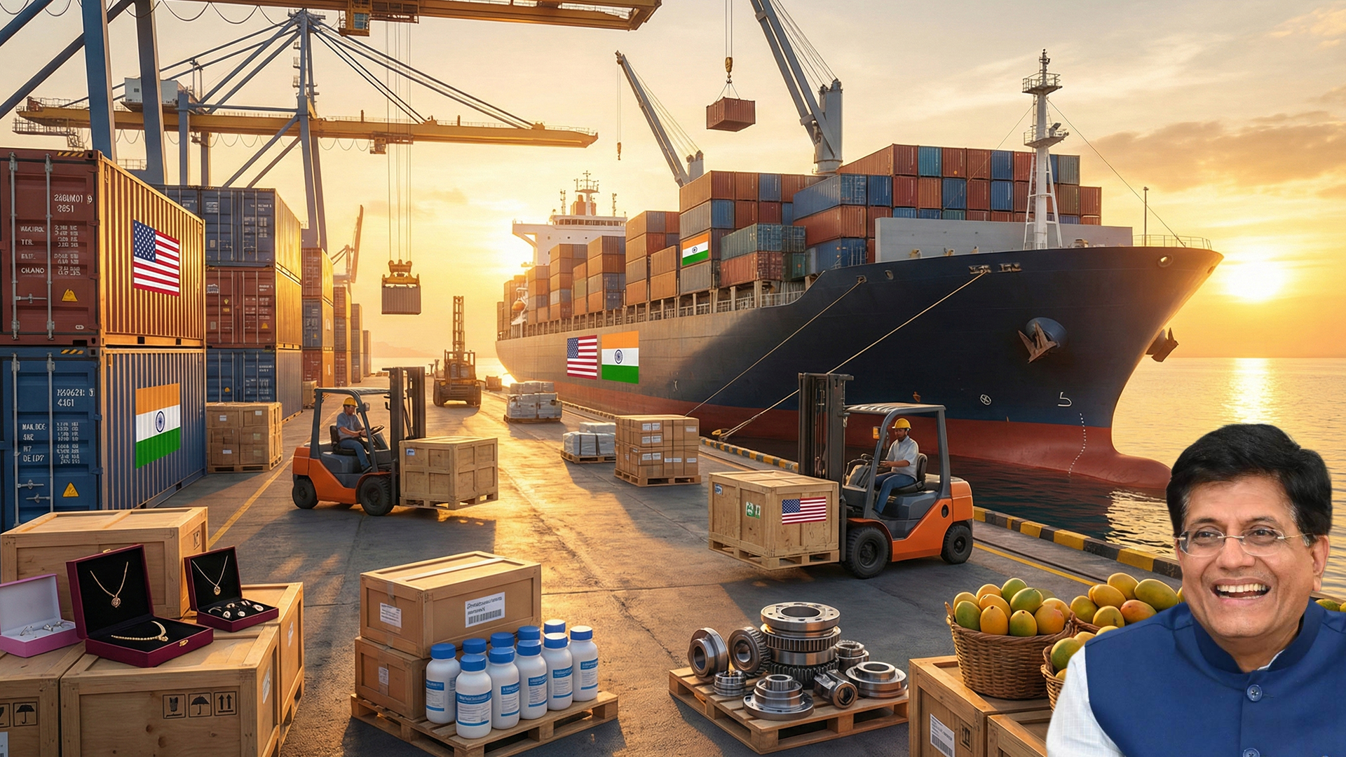 Commerce Minister Piyush Goyal listed several products that will enter the US without extra taxes, including gems and diamonds, generic medicines, smartphones, aircraft parts, and auto components. Several agricultural products will also benefit, such as tea, coffee, spices, coconut and coconut oil, cashews, areca nuts, and fruits like mangoes, bananas, and avocados.