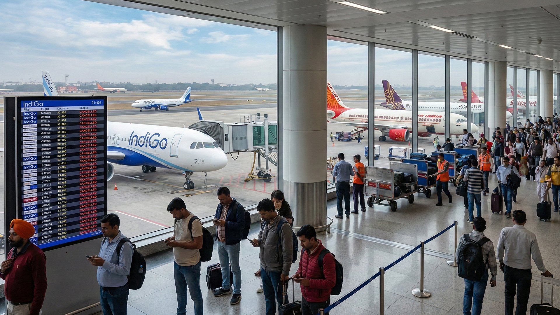 The government has directed IndiGo to reduce about 5% of its daily flights, around 110 flights, during widespread operational disruptions, with the freed slots to be reallocated to other carriers. The strict step comes after the airline faced massive cancellations and delays over the past week, affecting thousands of passengers during the busy winter travel season.