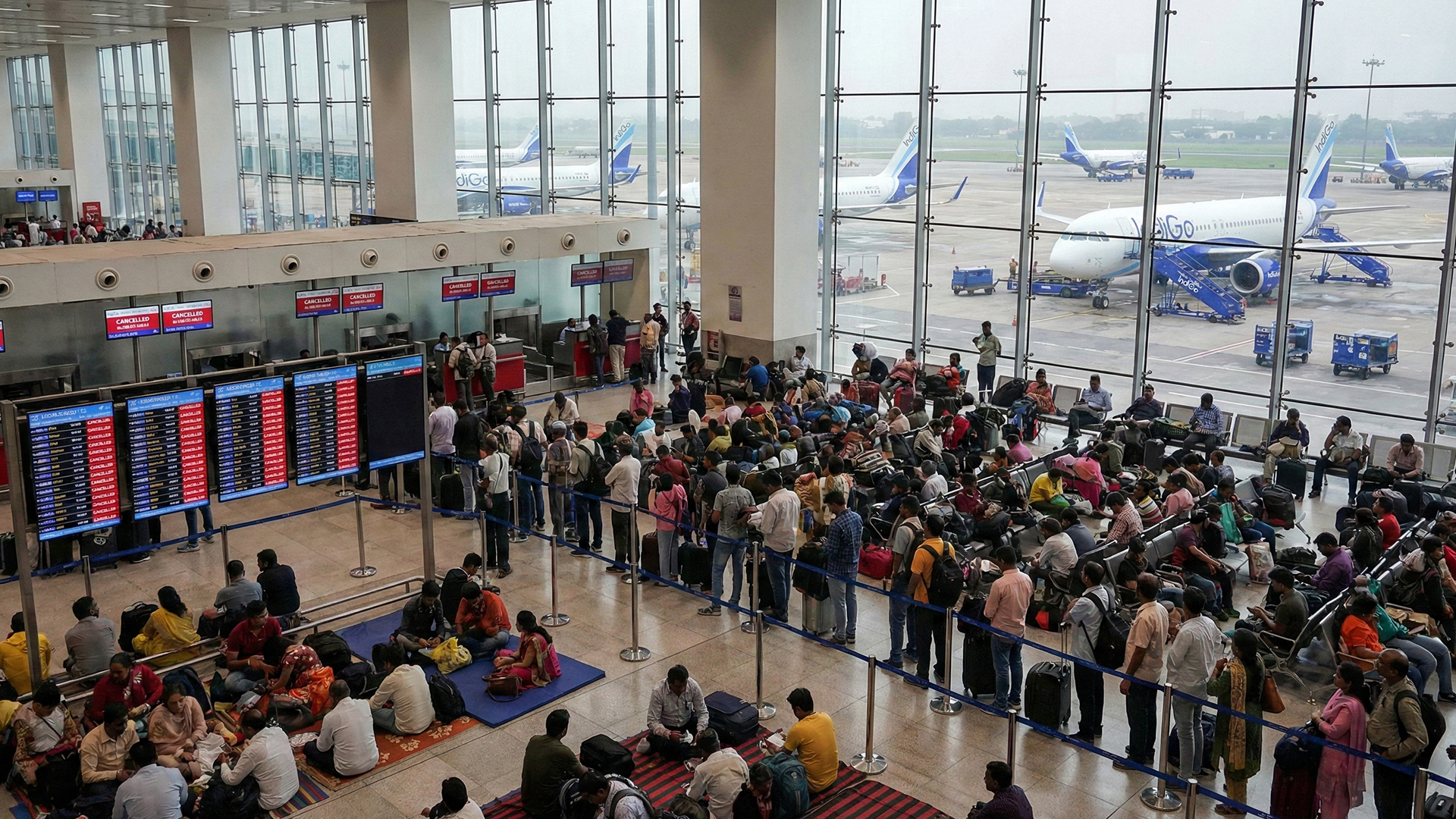 Since last Tuesday, over 4,500 IndiGo flights have been cancelled or rescheduled. On Monday alone, more than 400 flights were grounded, with Delhi and Bengaluru being the worst affected, each seeing over 100 cancellations. Other major cities including Hyderabad, Chennai, Ahmedabad, and Thiruvananthapuram have also witnessed widespread disruptions. Long queues at airports and frustrated passengers trying to rebook tickets have become common scenes. Some passengers reported paying tens of thousands of rupees to arrange alternate travel after receiving no cancellation alerts.