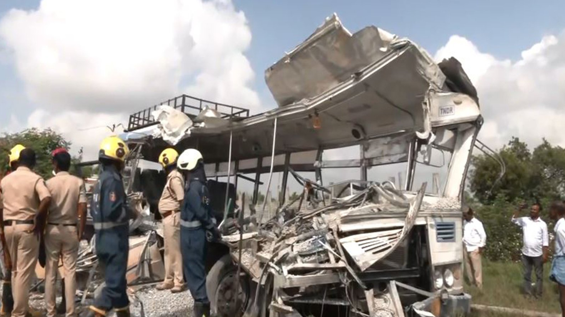 The bus, travelling from Tandur to Hyderabad with about 70 passengers, was crushed when the speeding truck rammed into it, causing the gravel load to spill inside. Many passengers were trapped under the debris as rescue teams and locals struggled to pull survivors from the mangled vehicle.